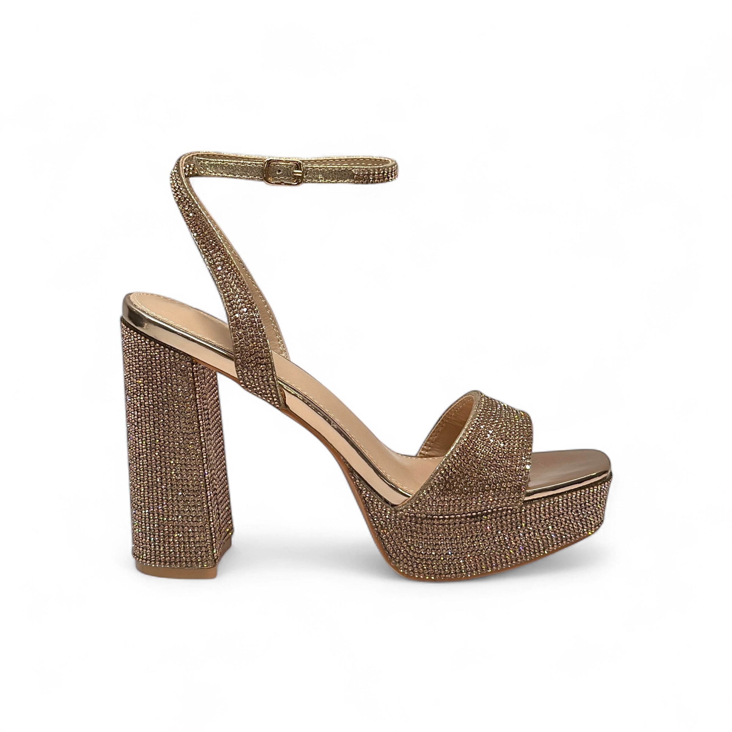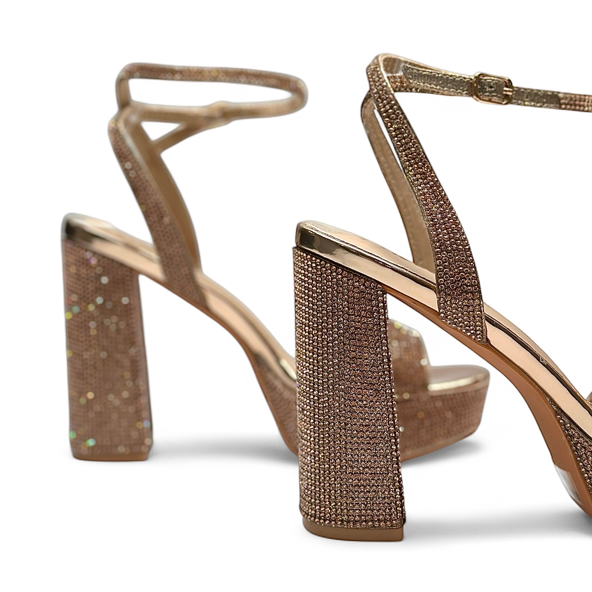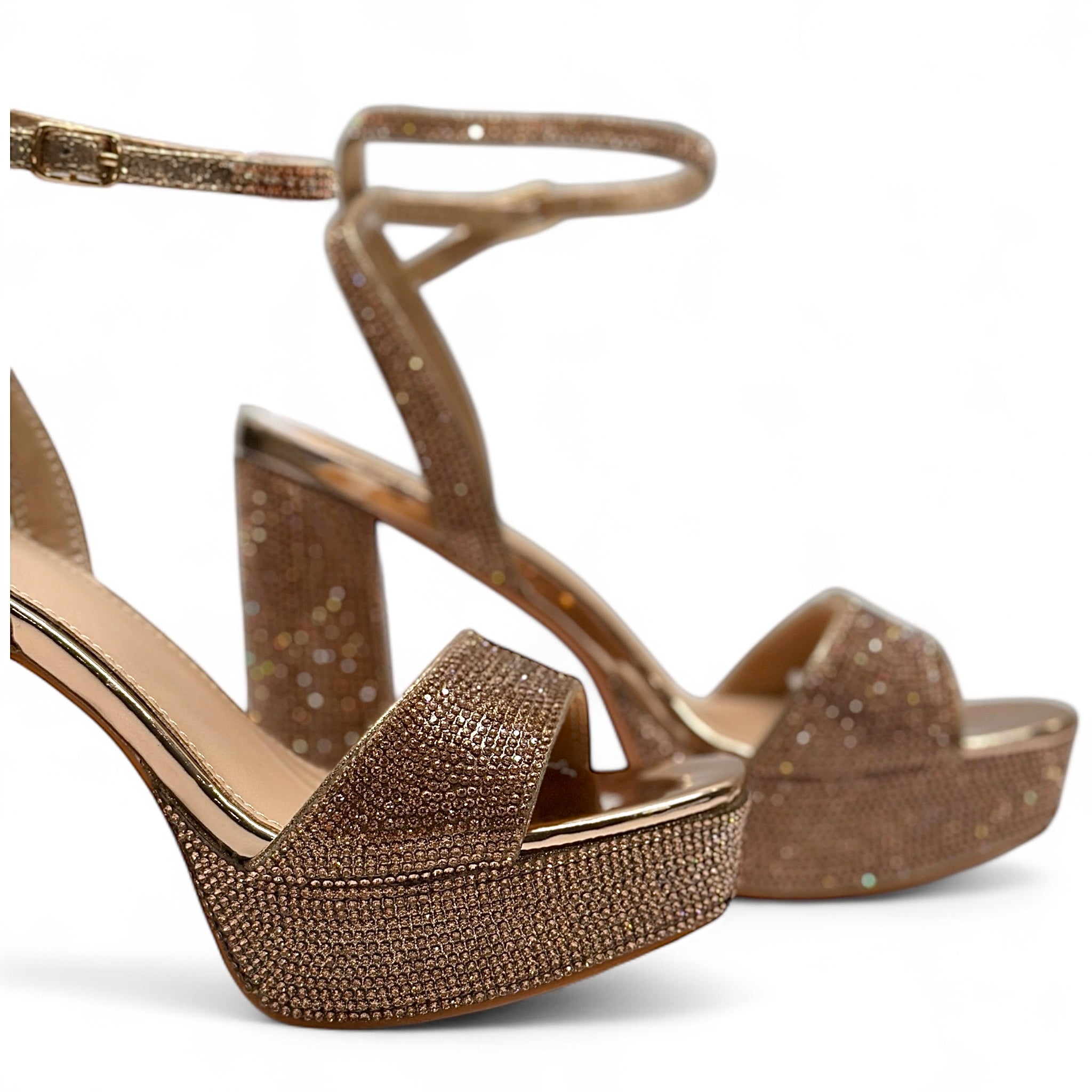 • ROSE GOLD PLATFORM BLOCK HIGH HEELS