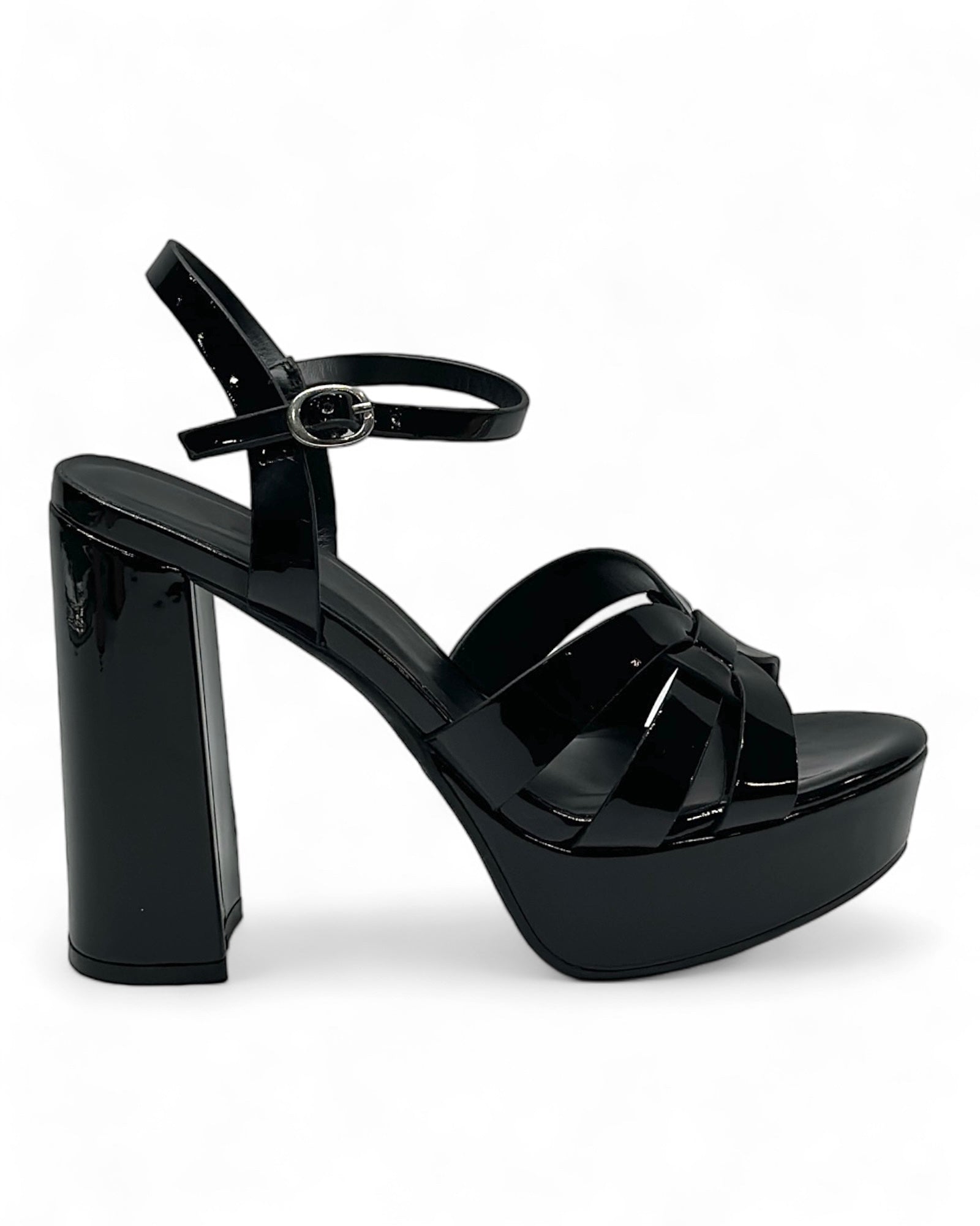 • BLACK PAT PLATFORM BLOCK HIGH HEELS