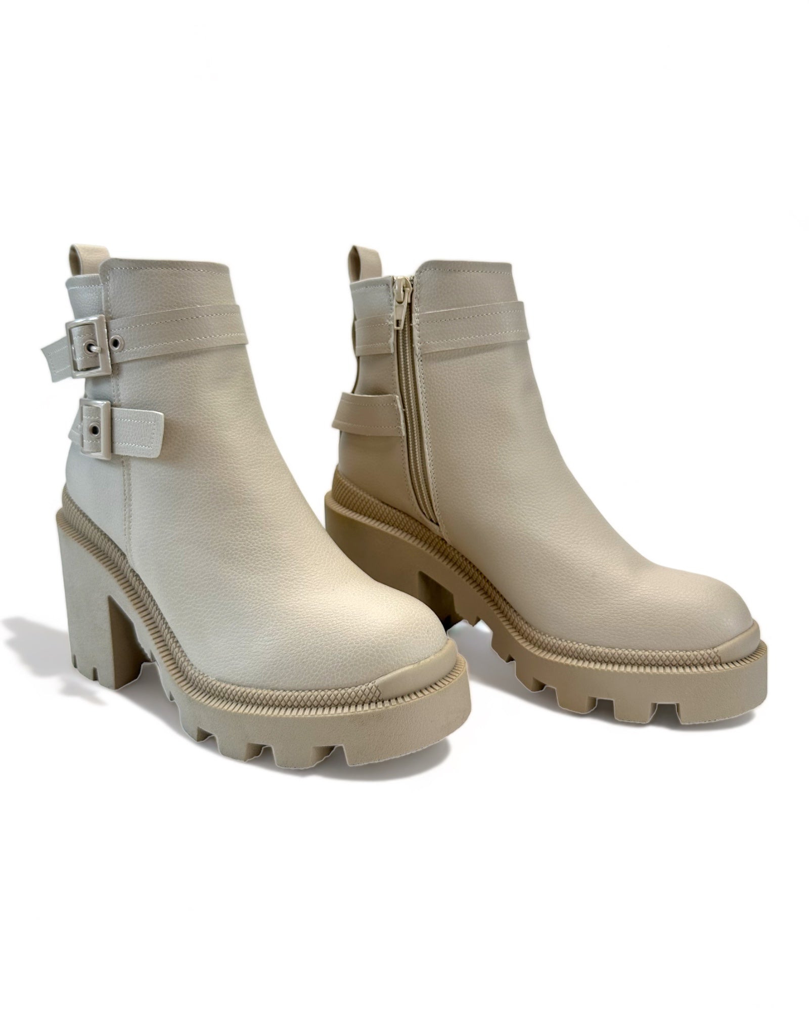 • IVORY CHUNKY HEEL PLATFORM SOLE ANKLE BOOT