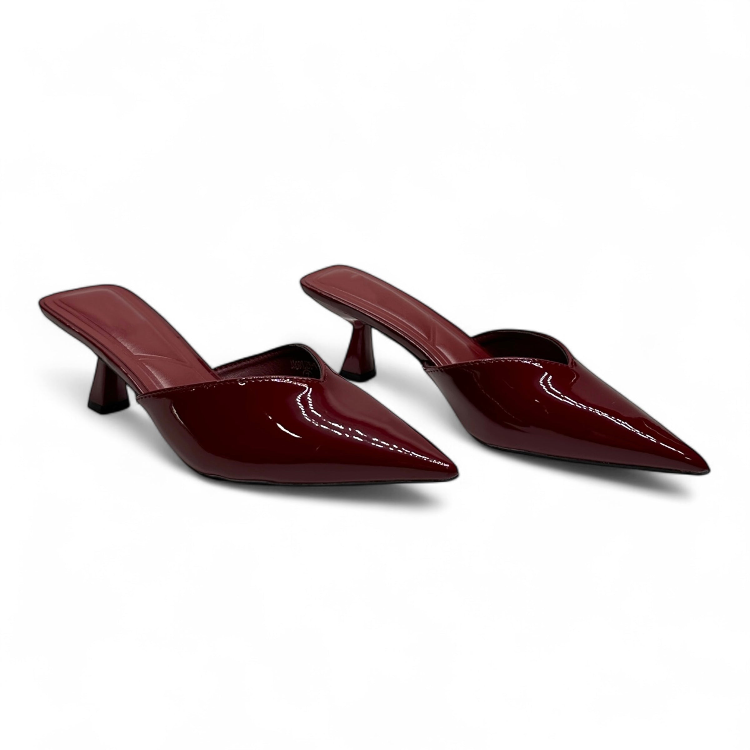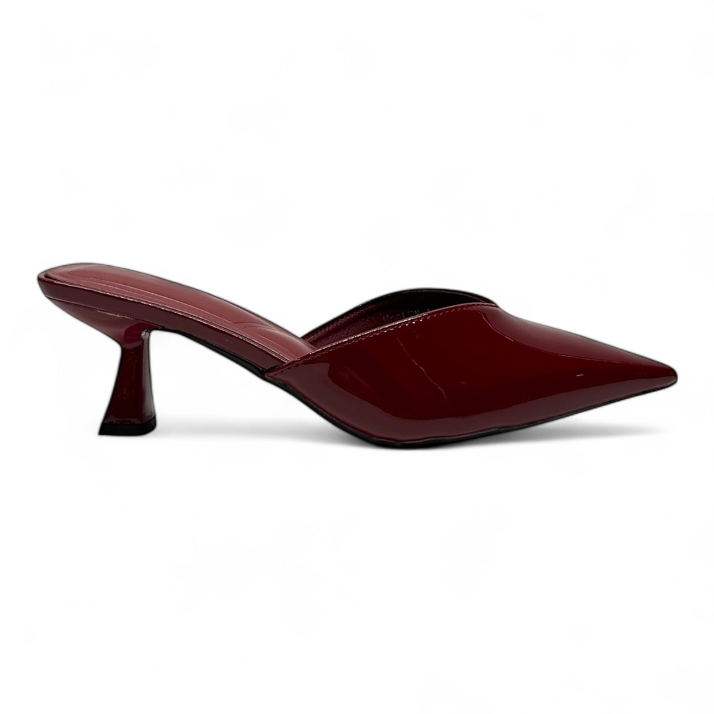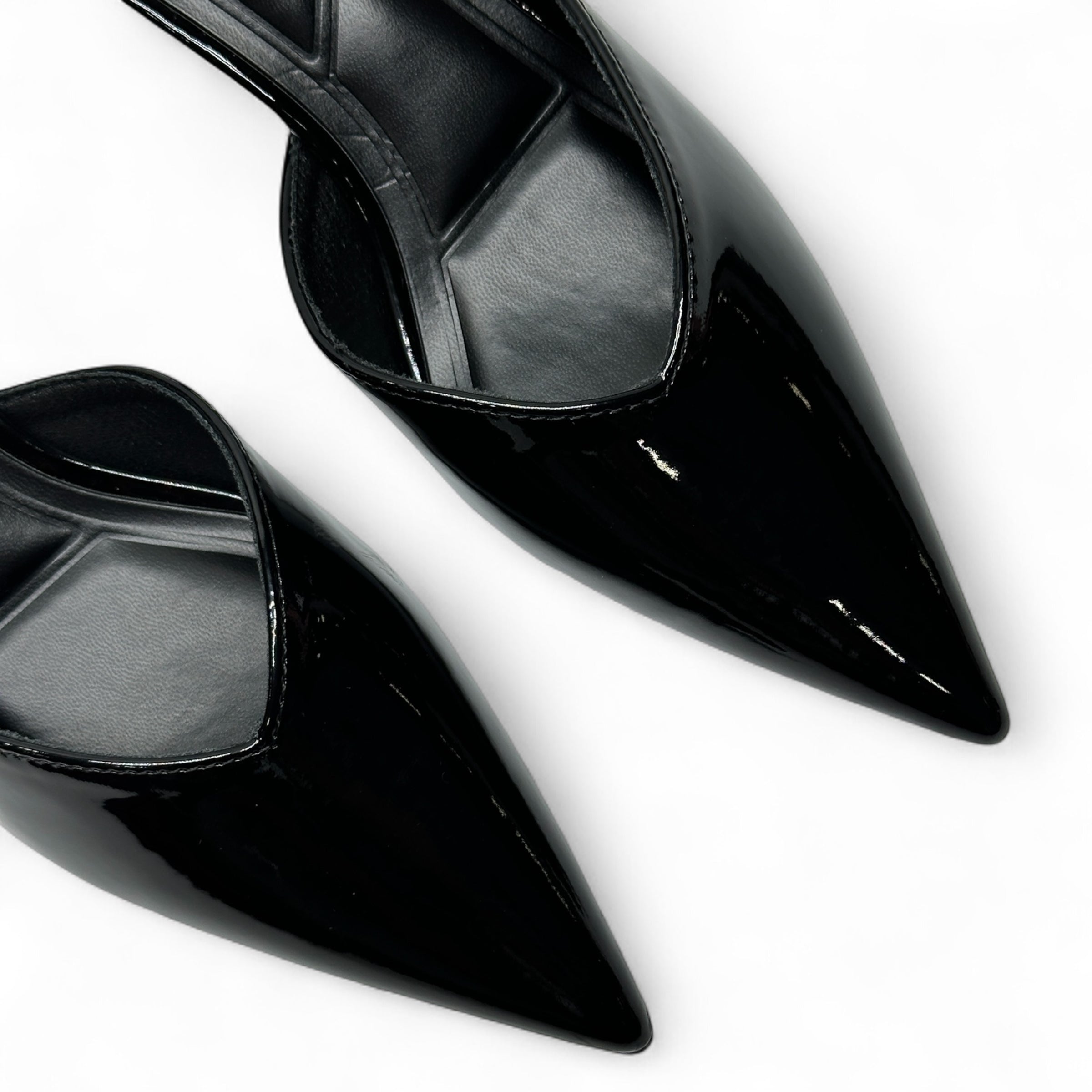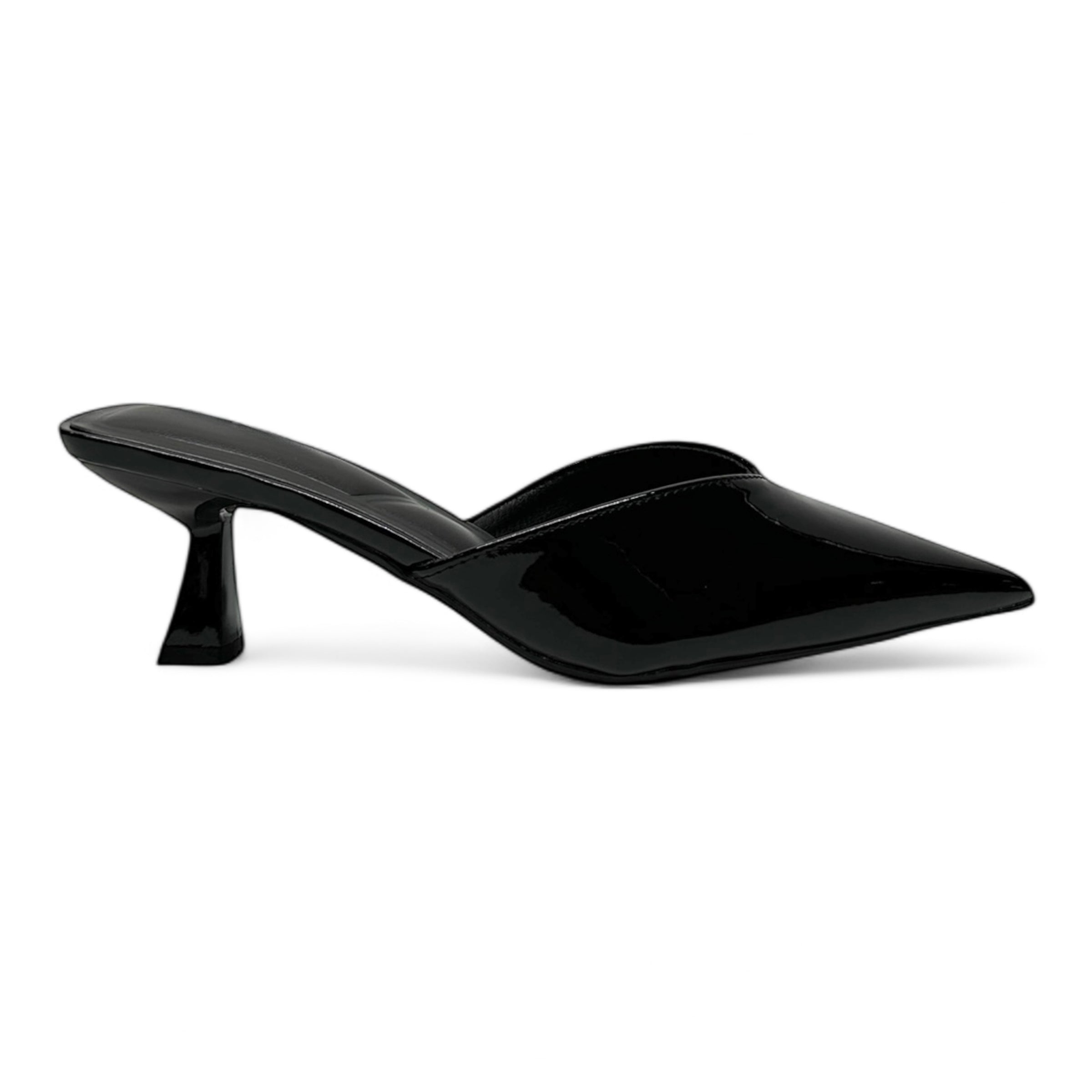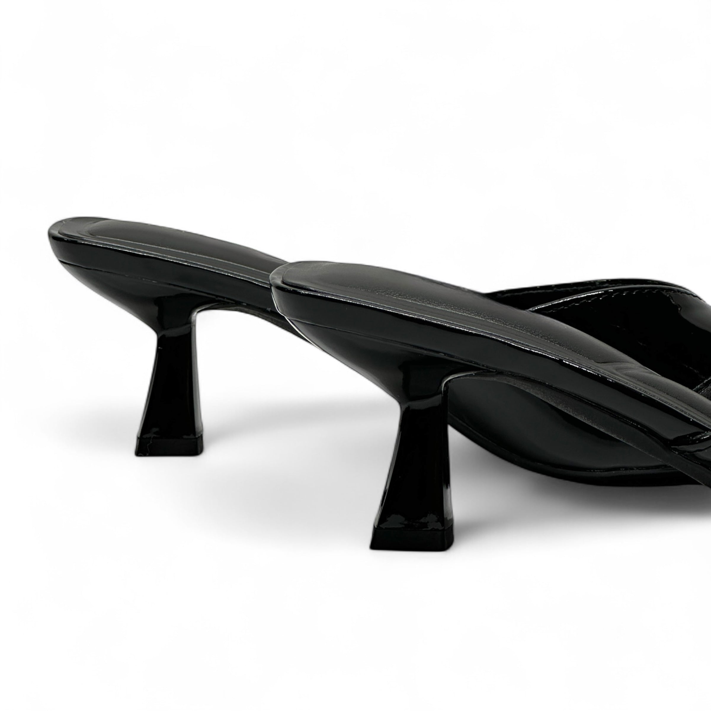 • BLACK PATENT TONE MULE HEELS