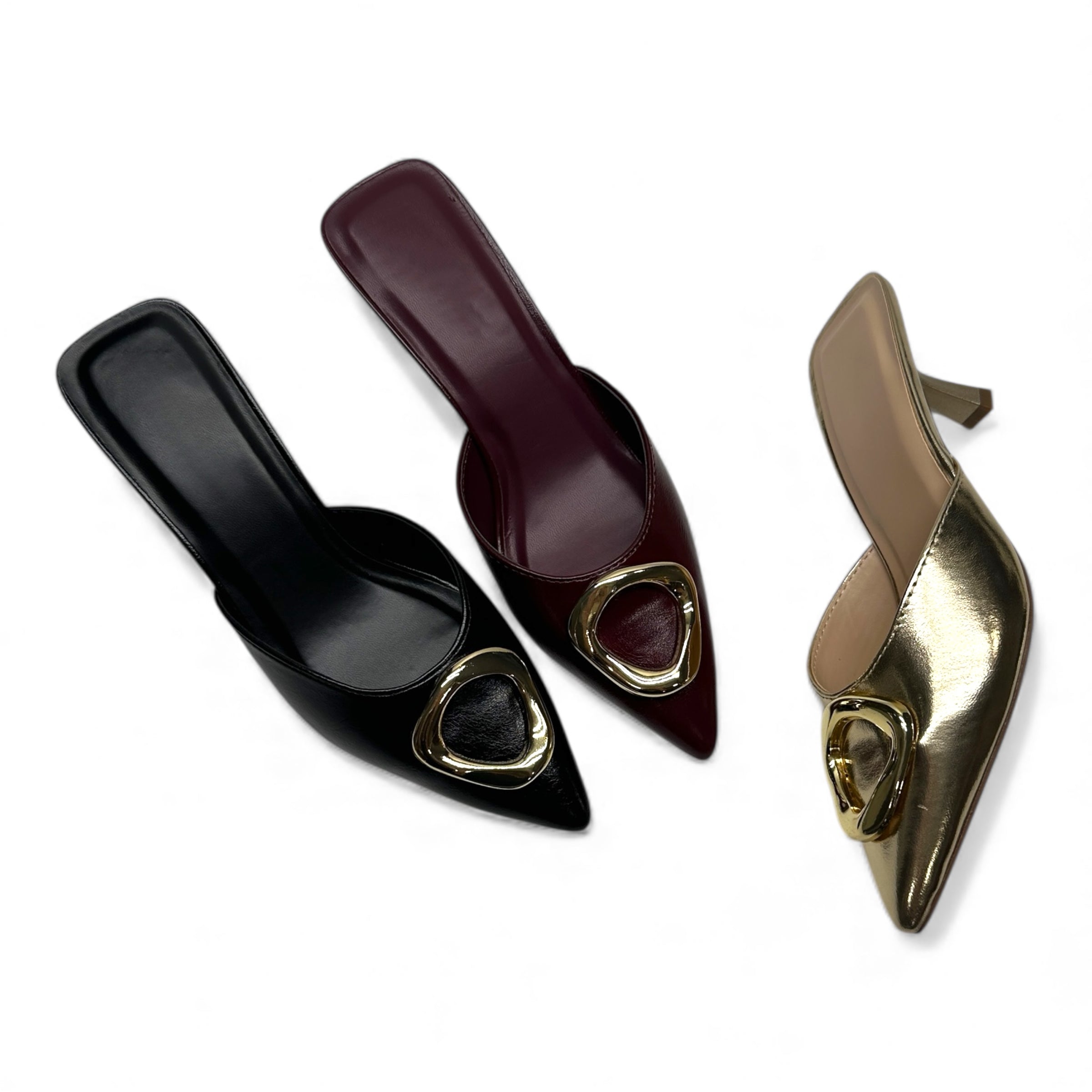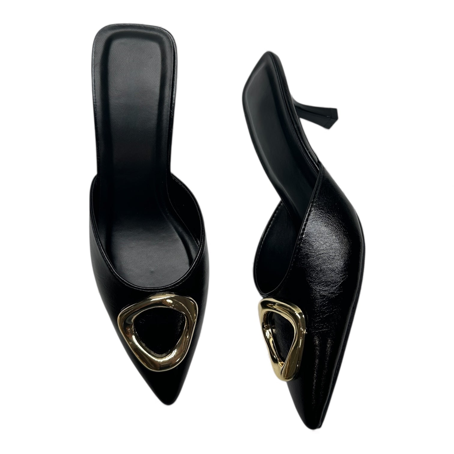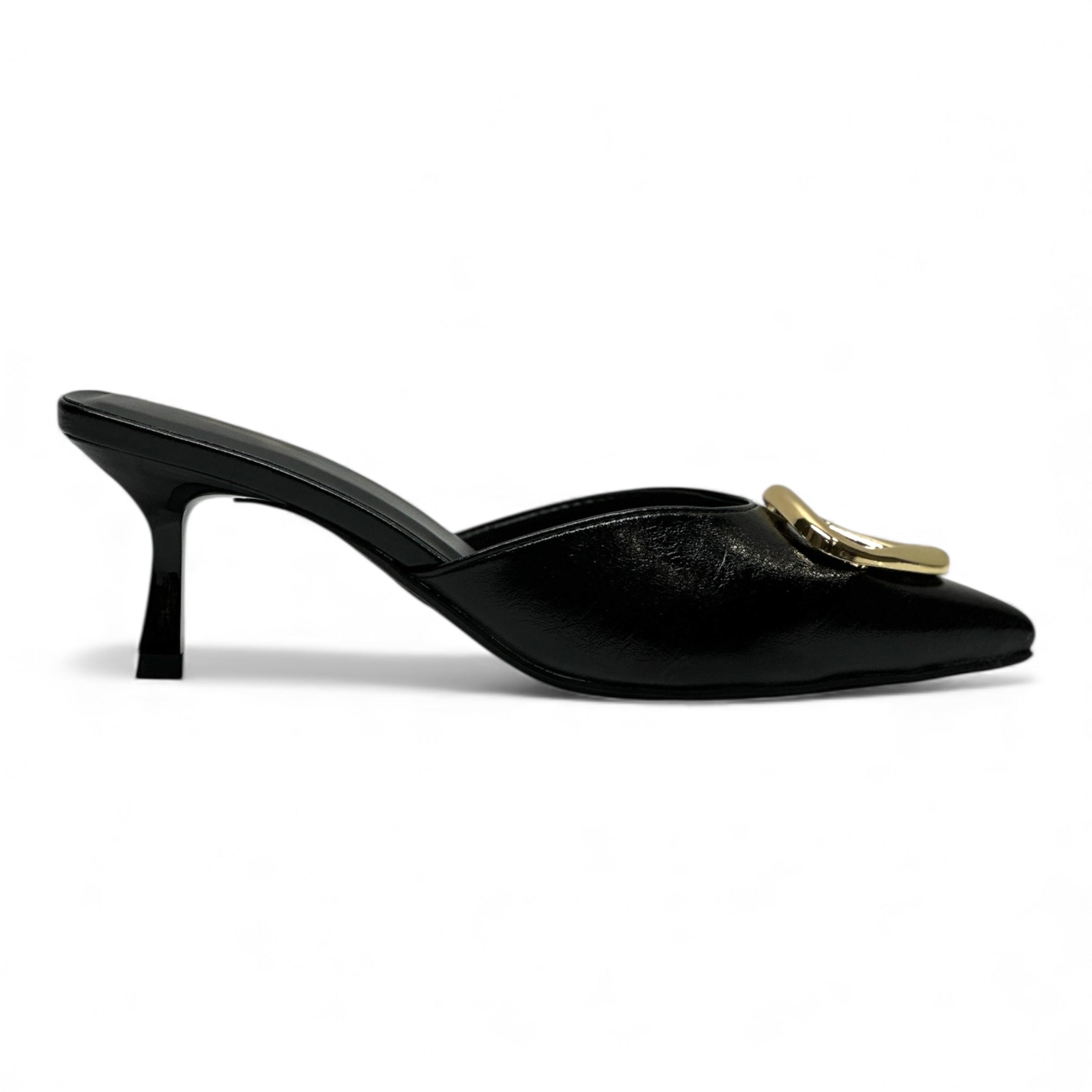 • Black Mid Heel Mules